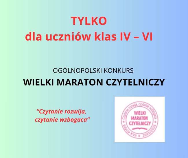 Wielki Maraton Czytelniczy dla uczniów klas IV- VI