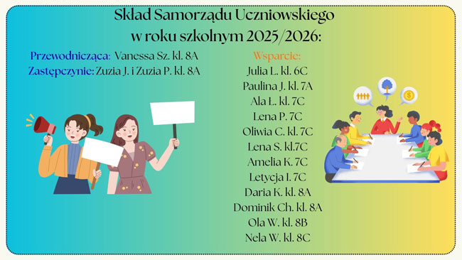 z radością informujemy, że zakończyła się rekrutacja do Samorządu Uczniowskiego na rok szkolny 2025/2026.