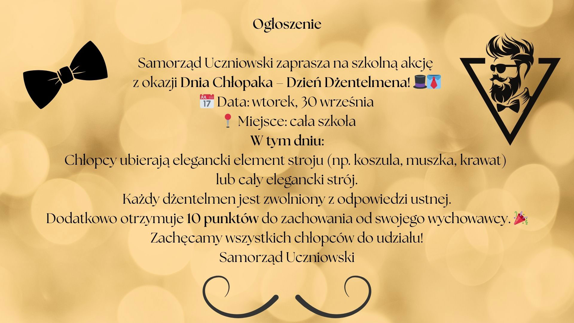 Samorząd Uczniowski zaprasza na szkolną akcję z okazji Dnia Chłopaka – Dzień Dżentelmena!