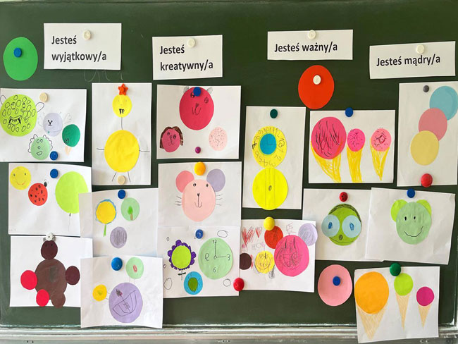 15 września obchodziliśmy Dzień Kropki 🟡🟢🔵🟣🟤⚪️🔴🟠. W naszej szkole, w oddziałach przedszkolnych również świętowaliśmy ten nietypowy dzień🥳. Dzieci słuchały opowieści o Vashti, dzięki której dowiedziały się, że każdy posiada jakiś talent, tylko czasem trzeba mu pomóc się ujawnić 🥰. Kropka jest symbolem kreatywności i twórczości 🖼🎨.
